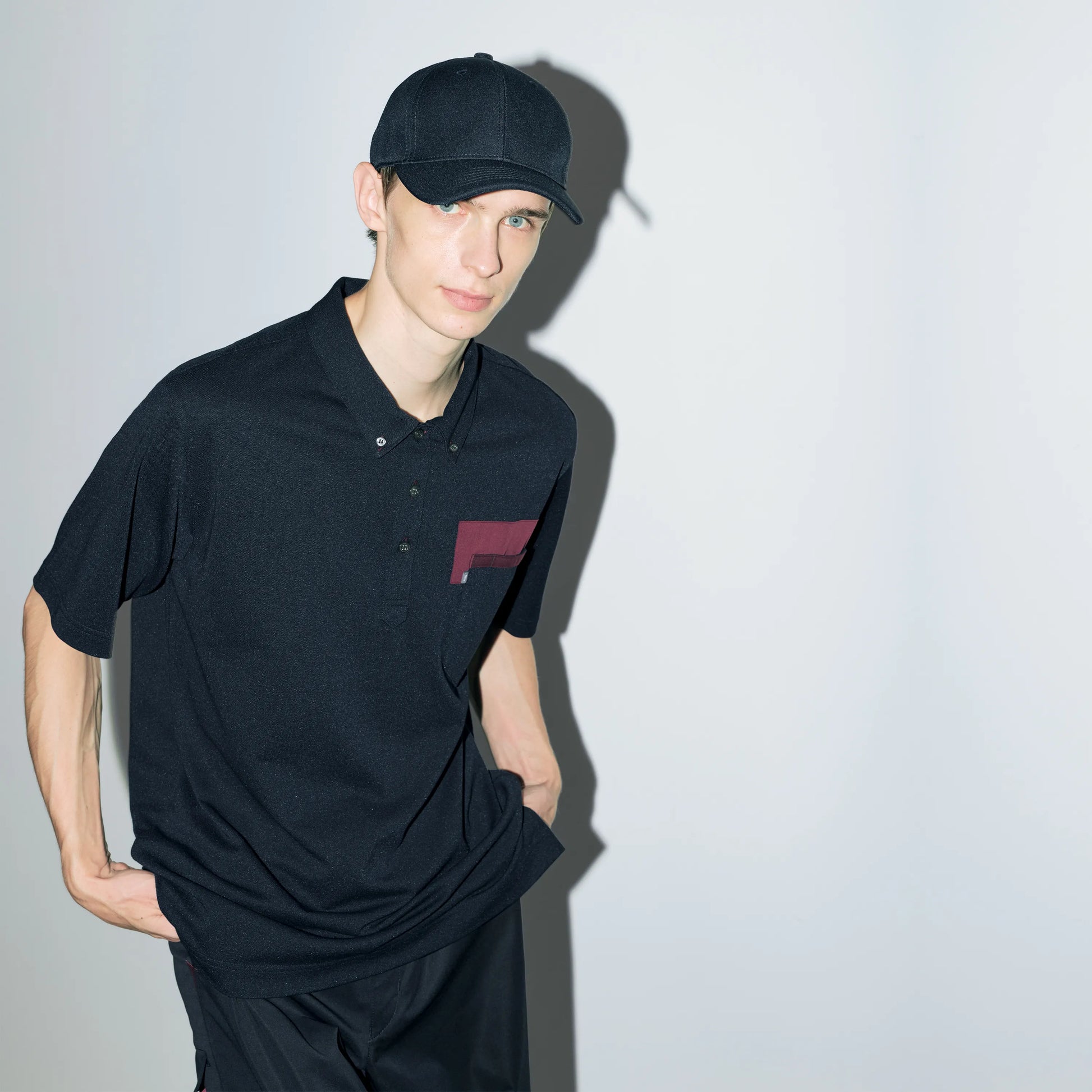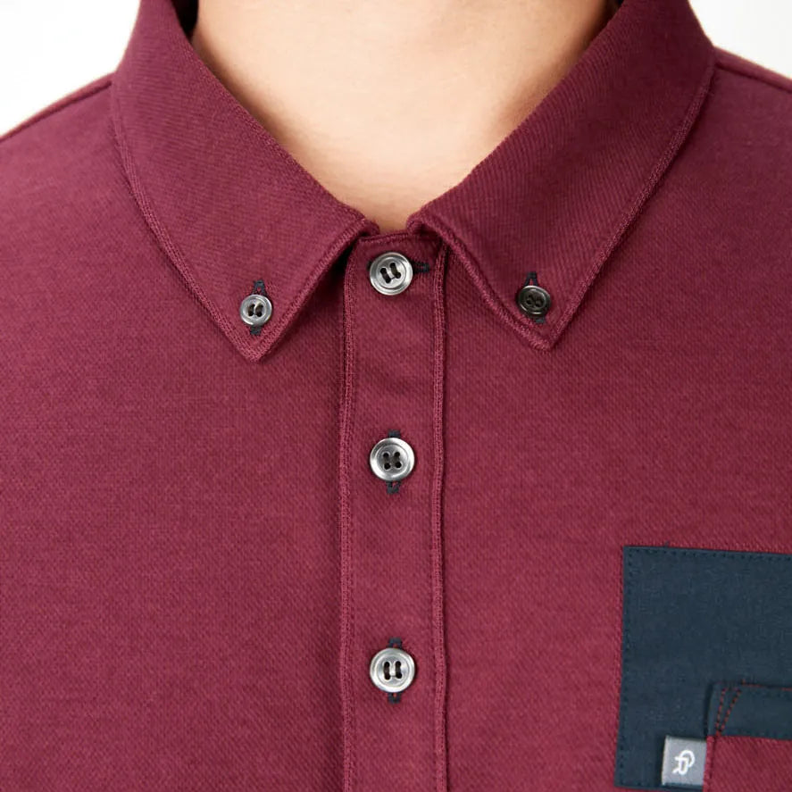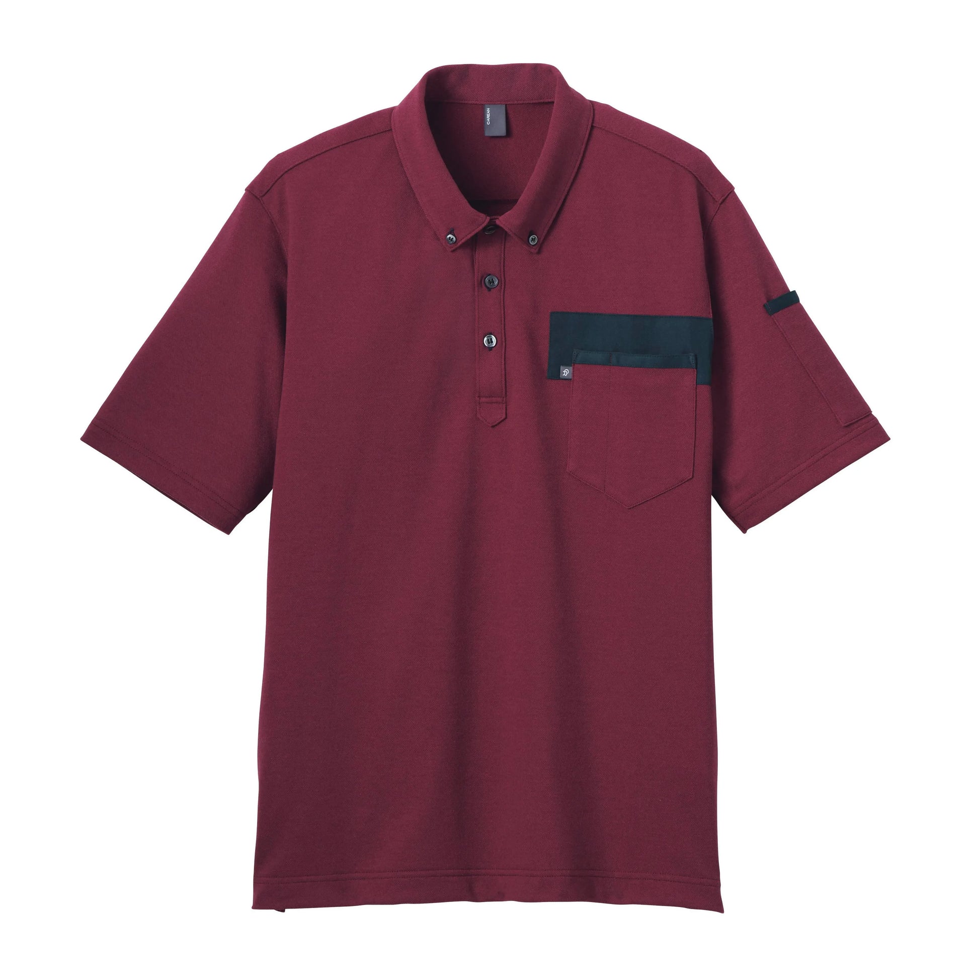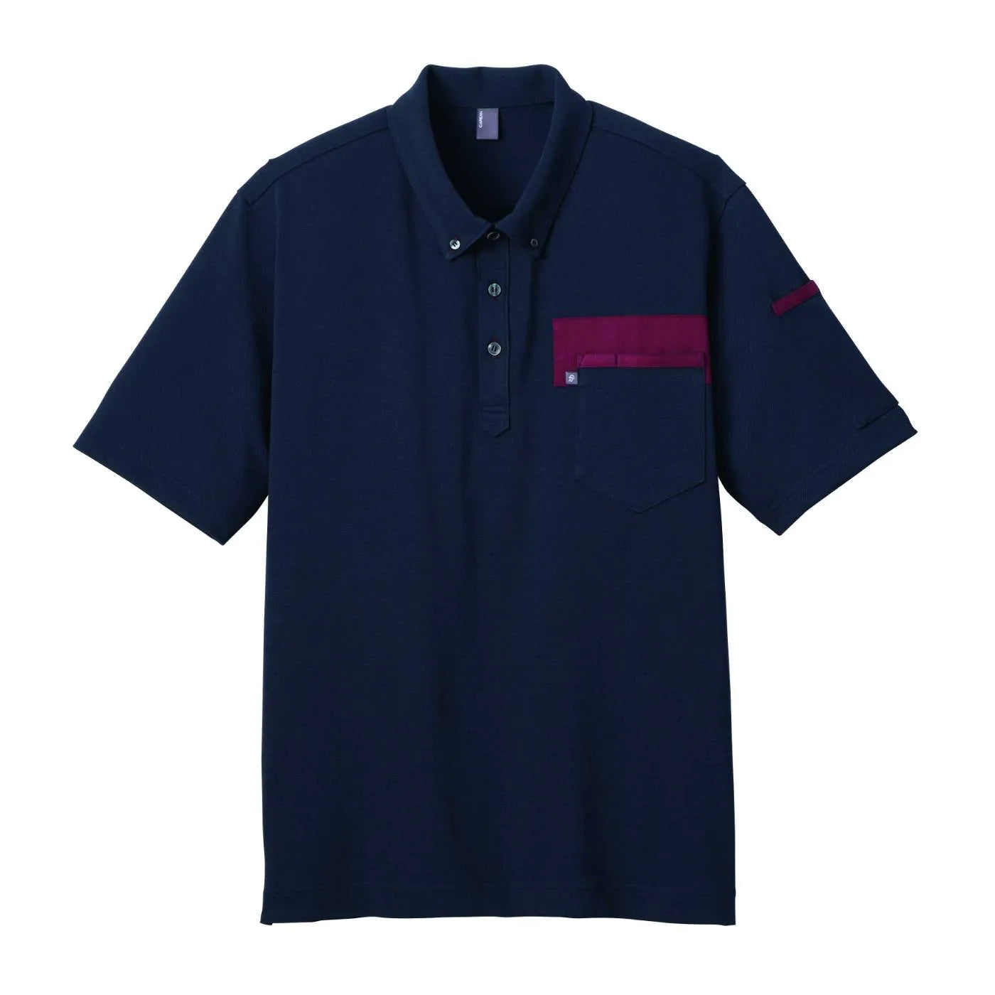 胸元の配色がアクセントを添えるボタンダウンの半袖ポロ。