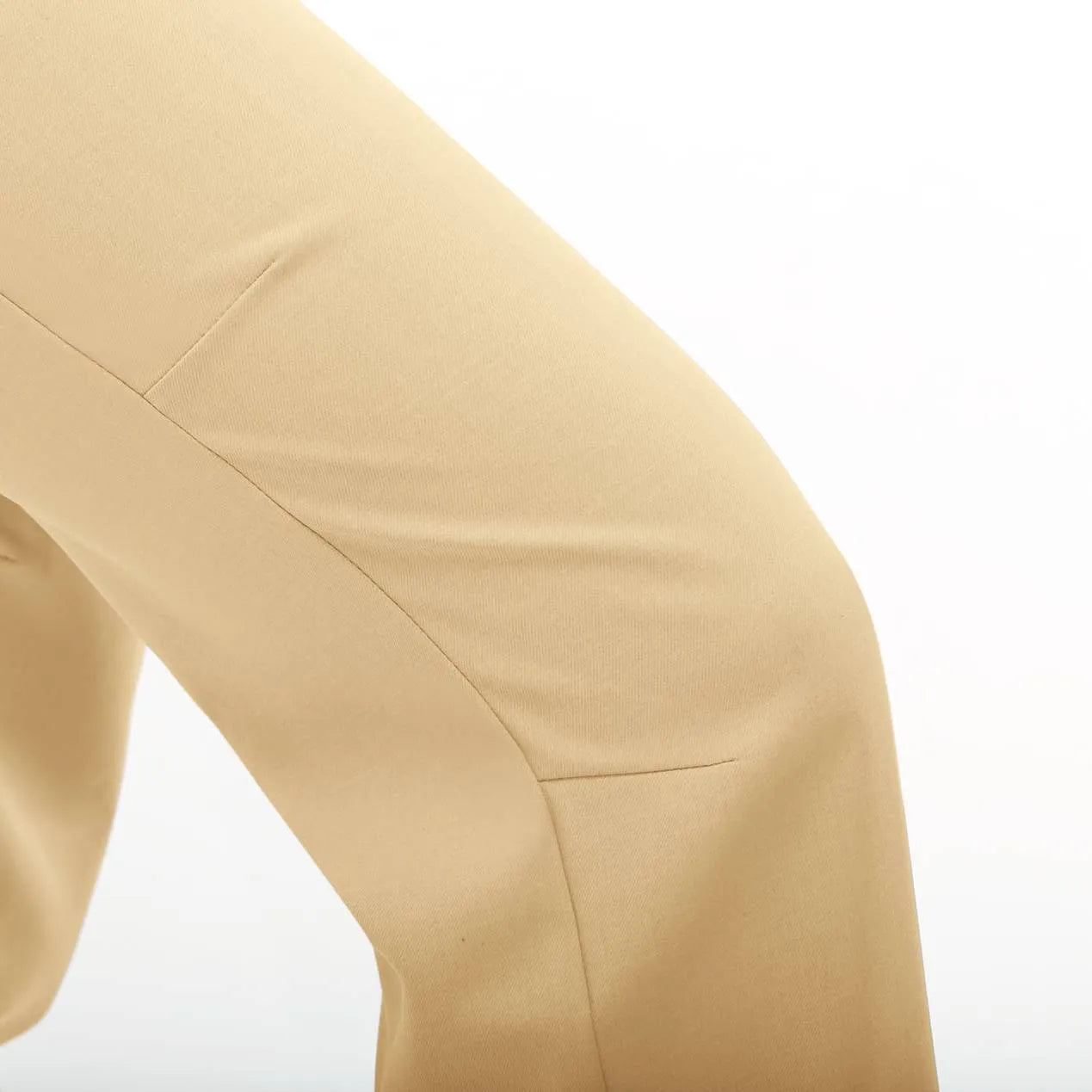 素材は、ストレッチのきいた、ほどよい厚みのやわらかなギャバ素材。